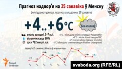 Беларускія мэтэаролягі апублікавалі прагноз надвор’я на дзень 25 сакавіка ў Менску. Гэта час, калі будзе адбывацца санкцыянаванае ўладамі «Сьвята незалежнасьці» — мітынг-канцэрт у гонар 100-й гадавіны абвяшчэньня незалежнасьці Беларускай Народнай Рэспублікі.