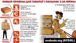 З 14 красавіка пачынае дзейнічаць указ № 40, які зьмяняе правілы правозу тавараў з-за мяжы і ўводзіць абмежаваньні на кошт і вагу пасылак з-за мяжы для грамадзян Беларусі.