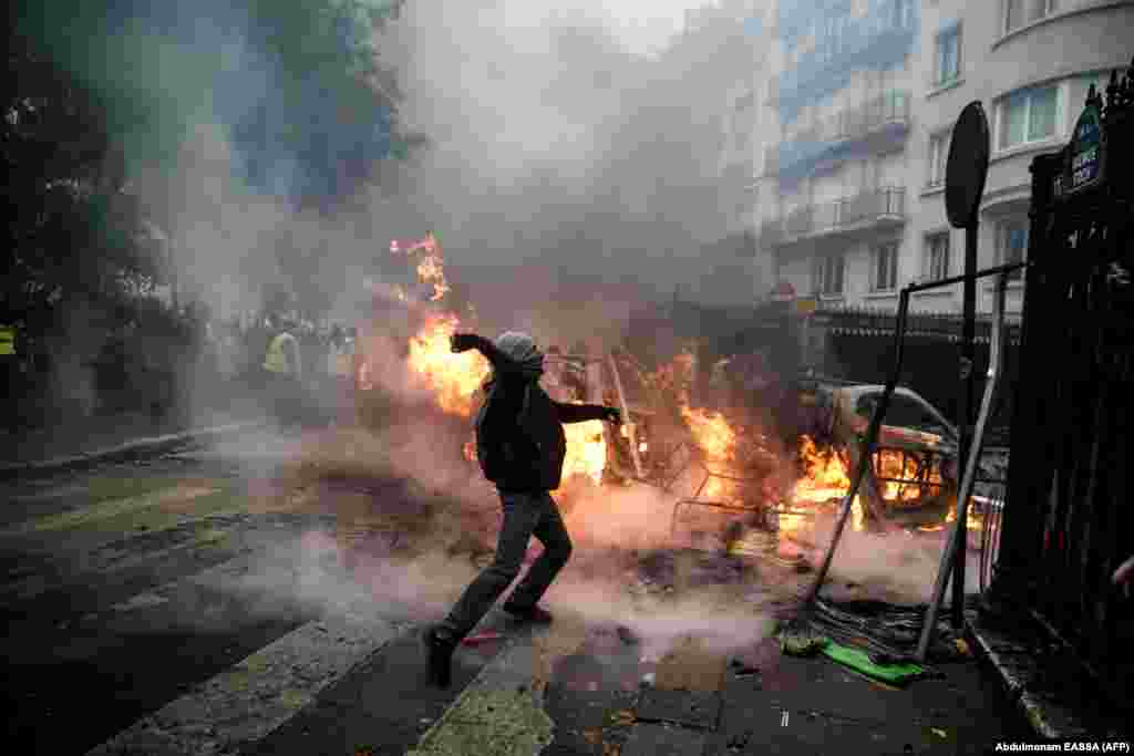 У выніку сутыкненьняў у цэнтры Парыжу гарэлі машыны і адбываліся масавыя беспарадкі.