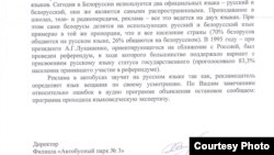 Тады кіраўнікі прадпрыемства даслалі адказ за подпісам галоўнага інжынэра аўтапарку Аляксандра Калесьнікава па-беларуску. Але без выбачэньняў і без адказаў на пастаўленыя пытаньні. На ўсе наступныя звароты чыноўнікі адказвалі тыпавымі лістамі, спасылаючыся на канстытуцыйнае дзьвюхмоўе.