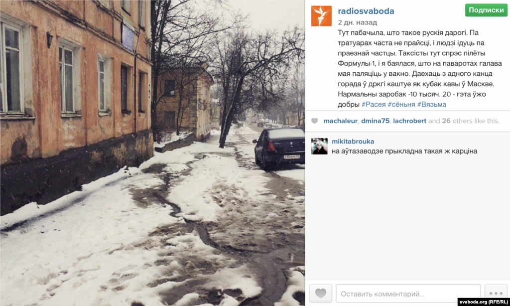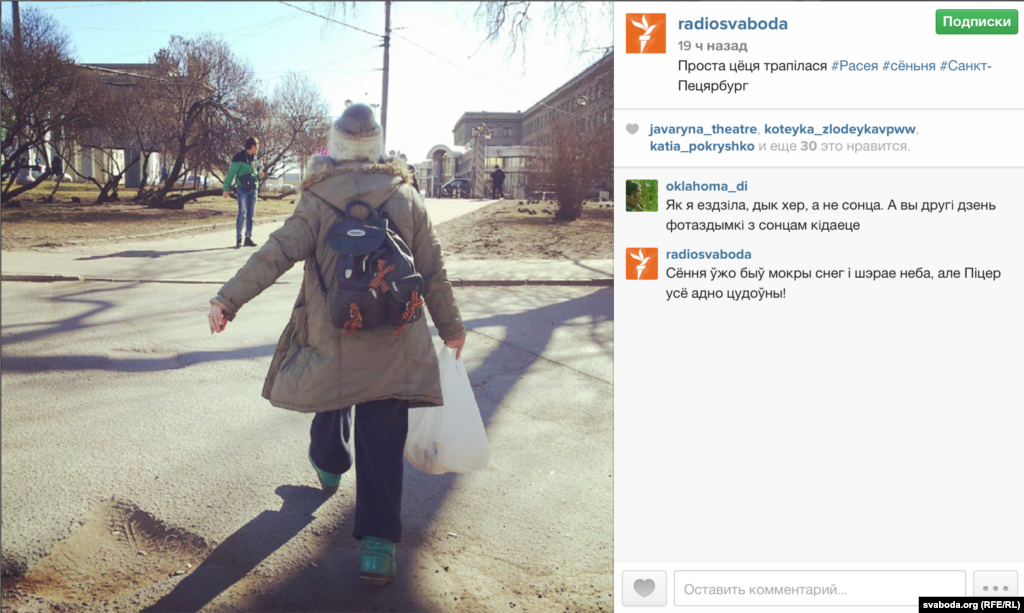 Russia - Trip of RFE/RL correspondent Aliaksandra Dynko to western russian cities, screenshots from Instagram