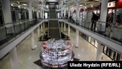 Змрочныя, пустыя, зь цёмным шклом памяшканьні, якія застаюцца без арандатараў на сярэднім і ніжнім узроўнях гандлёвага цэнтру, зьдзіўляюць наведнікаў.