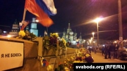 Кветкі, зьнічы, сьлёзы, спрэчкі — такім жа я бачу Нямцоў мост у нядзелю ў сярэдзіне дня.
