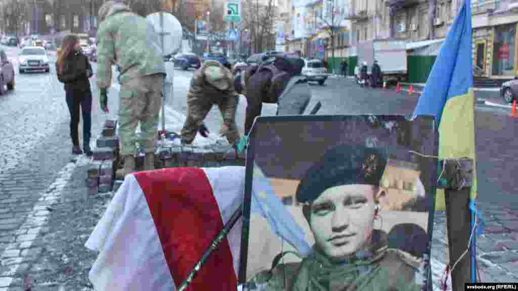 У Кіеве актывісты беларускай грамады і іх сябры аднавілі помнік Міхасю Жызьнеўскаму, разбураны напярэдадні ўначы аўтамабілем.