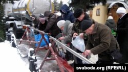 У чэргах па асьвечаную ваду — сотні гараджанаў. Ваду падвозяць сюды аўтацыстэрнамі. Спэцыялісты рэгіянальнай управы Міністэрства надзвычайных сытуацыяў змайстравалі на саборнай тэрыторыі адмысловыя вадаводы са шматлікімі кранамі. Многія гараджане з плястыкавым посудам стаяць у чарзе па сьвятую ваду з капліцы, дзе ёсьць свая сьвідравіна.