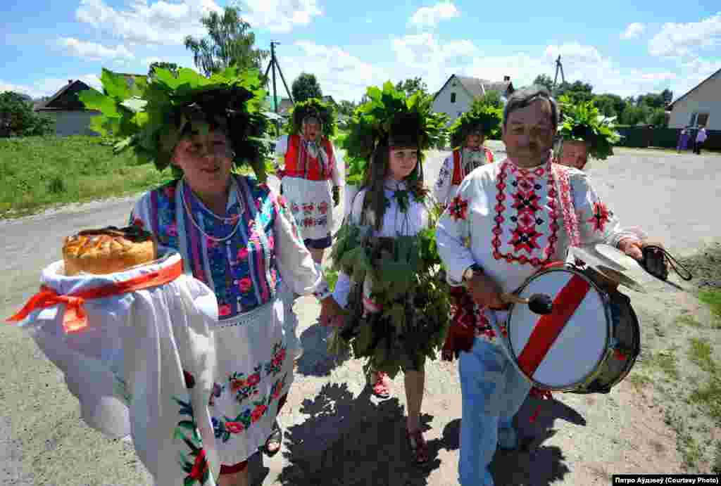 У гэты дзень на Палесьсі вяксовыя жанчыны і дзяўчаты абіралі самую прыгожую зь перадшлюбнага ўзросту, «пераапраналі» яе ў «шаты» з кляновых ці бярозавых лістоў, галінак і вяночкаў. Дзяўчына-«куст» зь сяброўкамі абыходзіла ўсё сяло, бо «каго куст мінае, той ураджаю ня мае», у хатах іх сустракалі пачастункамі і падарункамі. Пасьля хаджэньня зь дзяўчыны здымалі «куст», упрыгожвалі бярозку, кідалі вянкі на дрэвы.