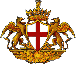 Сьцяг Генуі, як і належыць і як яго выявілі Крэскесы, — чырвоны крыж сьв. Юр’я на белым палатне. Такі сьцяг поруч з чырвона-залатым бізантіыйскім відаць над Канстантынопалем, які дажываў апошнія дзесяцігодзьдзі перад турэцкім нашэсьцем.