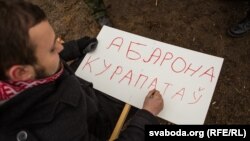 Працягваецца акцыя пратэсту па вуліцы Мірашнічэнкі ў Менску, дзе рыхтуюцца ўзьвесьці пяціпавярховы бізнэс-цэнтар.