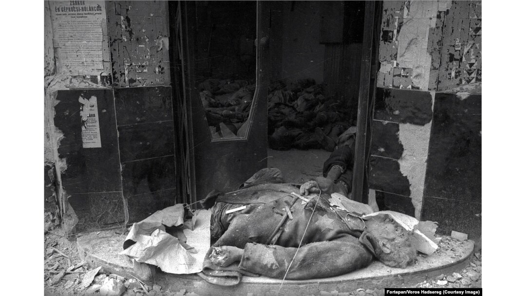 Вугорскі ваенны фатограф Робэрт Капа прыбыў у Будапэшт пасьля блякады. Ён апісаў свой родны горад як «прыгожую жанчыну з выбітымі зубамі».
