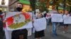 Беларусы, якія зьехалі ва Ўкраіну ў пошуках бясьпекі, сабраліся ля амбасады Беларусі ў Кіеве, пратэстуючы супраць уступленьня Аляксандра Лукашэнкі на пасаду прэзыдэнта.
