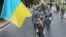Надзея Саўчанка прыехала да парлямэнту на дзьве гадзіны раней, чым пачалося пасяджэньне, але ў сэсійную залю ўвайшла практычна ў апошнія хвіліны — у белай сарочцы і з украінскім сьцягам на плячах.