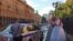 Чатыры мужчыны з выявамі дзяўчынкі, што пацярпела падчас аварыі з вайсковай тэхнікай, выйшлі на плошчу Леніна ў Горадні.